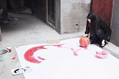 Cầu thủ cao 2,29m có vóc dáng như người khổng lồ này được nhiều người Trung Quốc và nhiều người yêu bóng rổ mến mộ và cô gái Thượng Hải có tên Hồng Yi đã thể hiện sự ngưỡng mộ anh bằng cách vẽ chân dung Yao Minh với sơn đỏ và "bút" là quả bóng rổ.