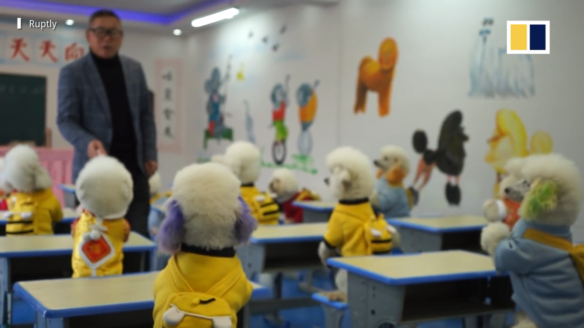 Một trường dạy thú cưng ở tỉnh An Huy (Trung Quốc) huấn luyện chó biết giải toán học, nghe tiếng Quan Thoại và nhảy dây.
