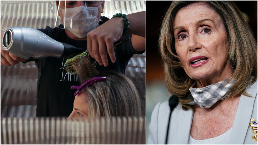 Theo phóng viên địa phương, những người biểu tình là “những khách hàng tức giận”, đã treo máy sấy và máy uốn tóc lên một cái cây trước nhà bà Pelosi. Họ gọi việc bà đến tiệm làm tóc, trong khi bên ngoài tích cực thúc đẩy các biện pháp chống dịch, là “đạo đức giả”, yêu cầu bà “quay trở lại làm việc” và nhanh chóng thông qua dự luật hỗ trợ COVID-19 ở Washington.