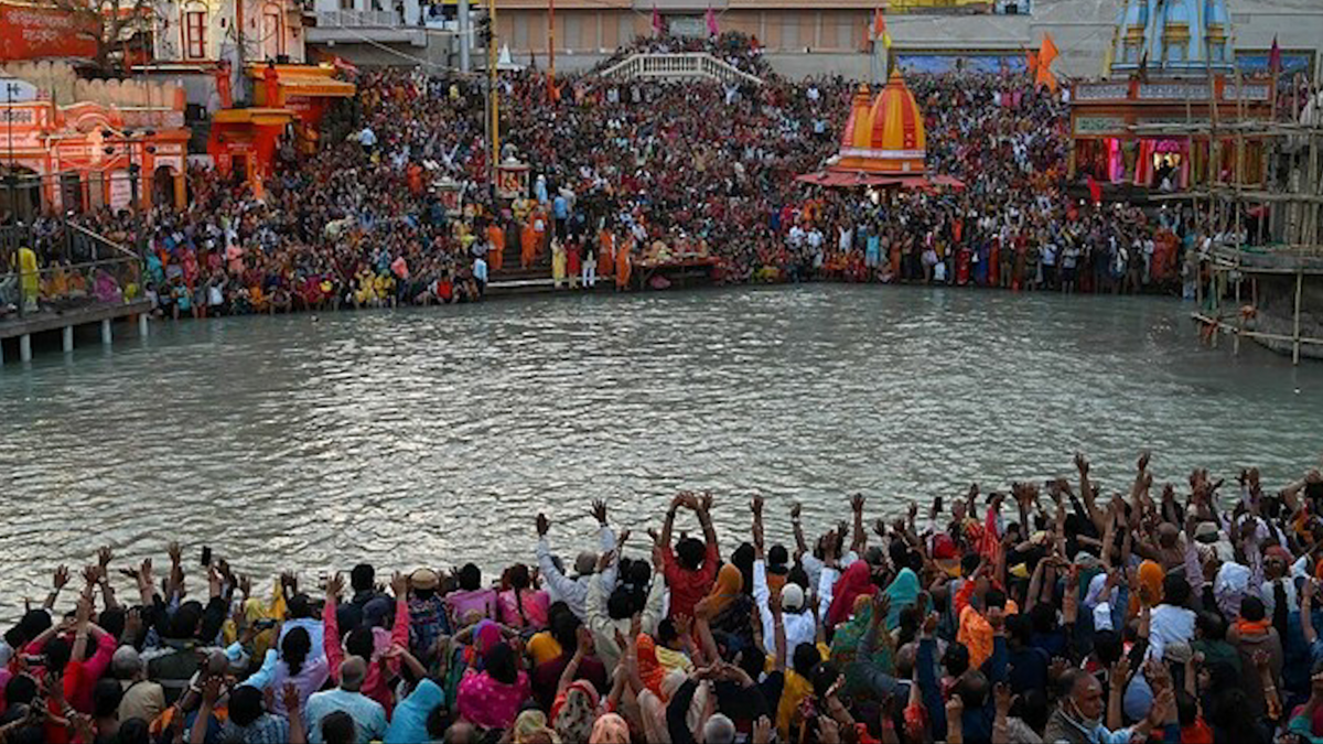 Người dân Ấn Độ chen chúc ngâm mình trong dòng nước thiêng sông Hằng ở lễ hội Maha Shivaratri để tẩy rửa tội lỗi, bất chấp COVID-19.