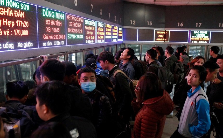 Chiều 28/12, Hà Nội lạnh 14 độ C và có mưa nhỏ, hàng nghìn người đã đổ đến các bến xe, ga tàu để về quê, bắt đầu kỳ nghỉ Tết dương lịch kéo dài 4 ngày từ ngày 29/12/2018 đến hết 1/1/2019.