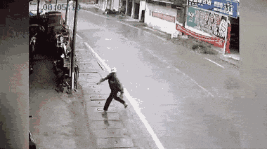Người đàn ông đi bộ qua đường tại Quảng Tây, Trung Quốc bị chiếc ô tô điện mất kiểm soát lao tới, suýt tông trúng.