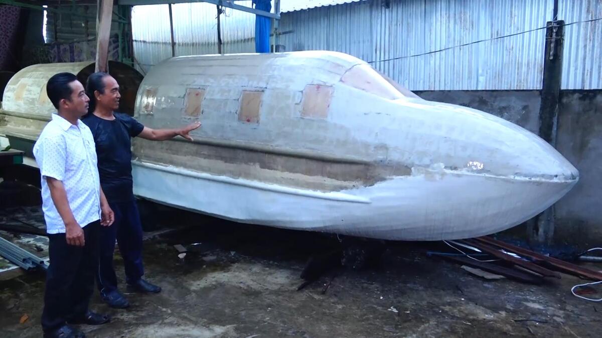 Ông Phạm Ngọc Quý (Châu Phú, An Giang) đang nghiên cứu, chế tạo chiếc thủy phi cơ bằng composite, dài 11m, rộng 1,5m có khả năng chở tối đa 16 hành khách.