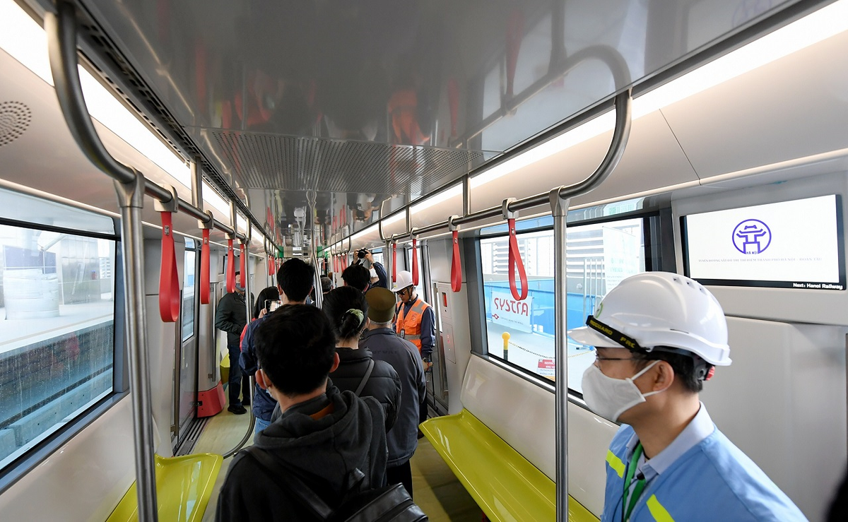 Người dân được trực tiếp tham quan đoàn tàu đầu tiên của tuyến Metro Nhổn - ga Hà Nội tại nhà ga S1 (đối diện trường Đại học Công nghiệp Hà Nội).