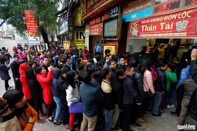 25/02/2018 10:41:00 +07:00Từ sáng sớm ngày thần tài 25/2 (mùng 10 tháng Giêng), hàng nghìn người dân Hà Nội đổ về các cửa hàng kinh doanh vàng bạc để mua vàng đón vía thần tài, cầu mong năm mới làm ăn thuận lợi, tiền bạc đầy túi.