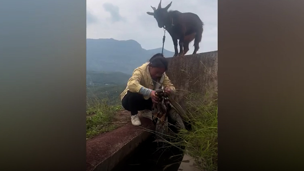 Trong khi chăn dê, một người phụ nữ ở khu vực tây nam Trung Quốc đã cứu con đại bàng nhỏ gặp nạn trong mương nước và giúp nó trở lại với bầu trời.
