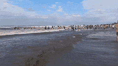 Nghe thấy tiếng kêu cứu, nhiều người đang tắm trên bãi biển Binmaley (Pangasinan, Philippines) lập tức nối tay nhau dài hàng chục mét, kéo anh ta vào bờ sơ cứu.