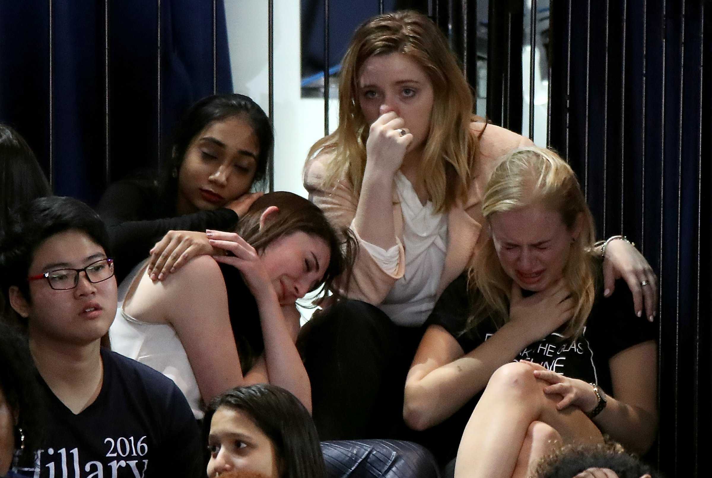 Video: Người ủng hộ bà Hillary bắt đầu khóc và rời khỏi điểm ăn mừng chiên thắng