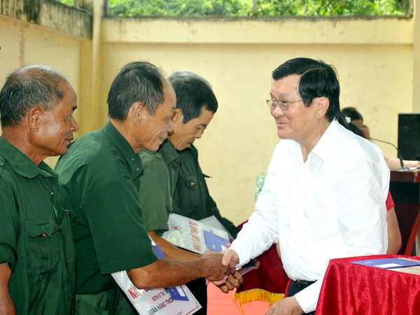 Nguyên Chủ tịch nước Trương Tấn Sang trao 276 căn nhà tặng các cựu binh mặt trận Vị Xuyên (Hà Giang).