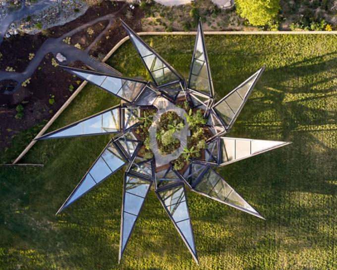Nhà kính Glasshouse ở Anh rộng 141 m2 trồng những loại cây quý hiếm, có thể đóng mở để bảo vệ cây cối bên trong tùy vào điều kiện thời tiết.