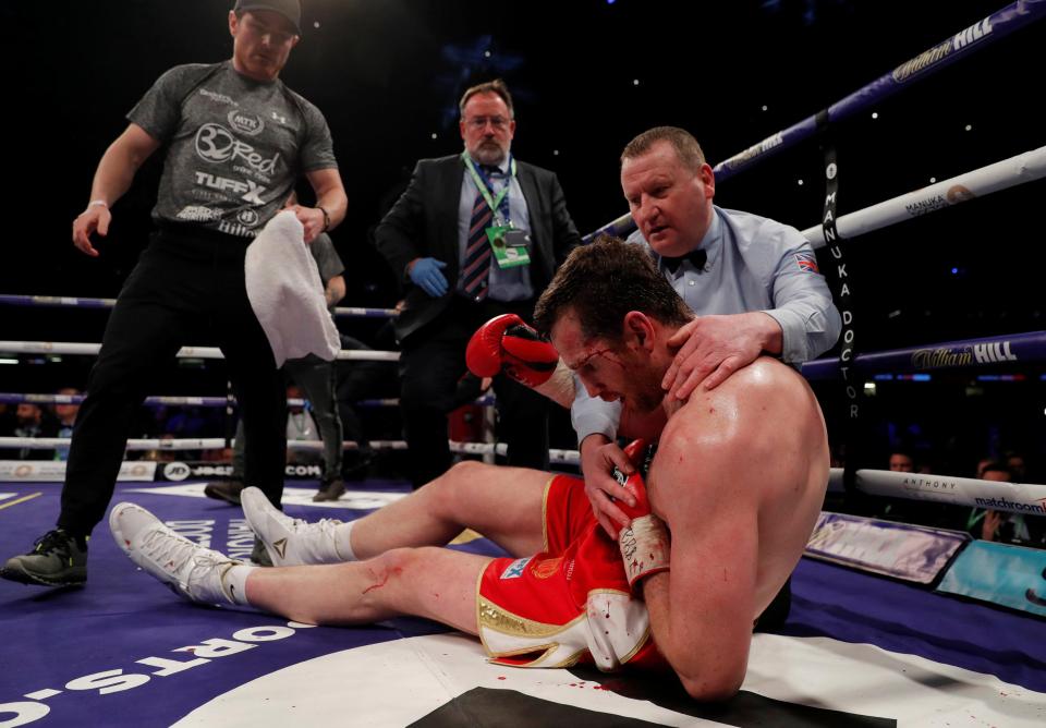 Võ sĩ người Anh phải thở bình oxy vài phút. Tuy nhiên anh vẫn tỉnh táo và có thể tự bước xuống sàn đấu.
