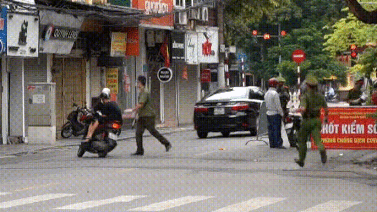 Nhiều người quay đầu xe bỏ chạy khi gặp tổ công tác đặc biệt, làm nhiệm vụ kiểm tra giấy đi đường của người dân trong thời gian giãn cách ở Hà Nội.