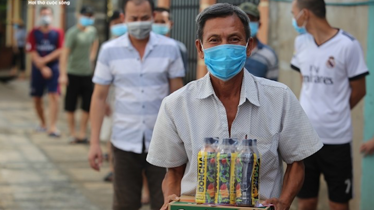 Chiều 15/9, đại diện Báo điện tử VTC News trao 300 phần quà của độc giả giúp đỡ các xóm trọ có nhiều ca F0 tại phường An Phú (TP Thuận An, Bình Dương).