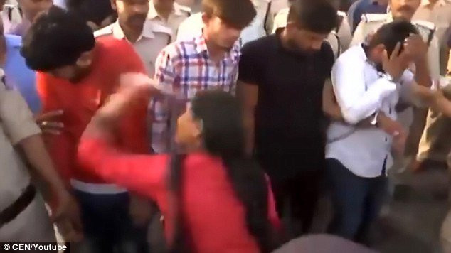 Hình ảnh được Daily Mail đăng tải cho thấy 4 kẻ bắt cóc và cưỡng hiếp một nữ sinh 20 tuổi ở Bhopal, Ấn Độ phải đi trên phố cho những người phụ nữ đánh. Nhóm thanh niên này còn được cho là đe dọa giết nạn nhân và gia đình cô.