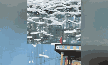 Những khối tuyết khổng lồ rơi như thác nước từ nóc sân vận động tại TP Phủ Thuận (Liêu Ninh, Trung Quốc) may mắn không ai bị thương,
