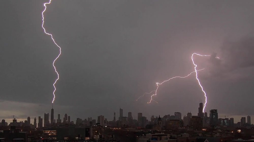 Những tia chớp rực sáng trên bầu trời Chicago, Mỹ tạo nên cảnh tượng khác lạ như trong phim viễn tưởng.