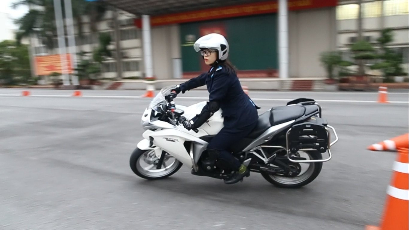 - nữ sinh cảnh sát điều khiển xe phân khối lớn