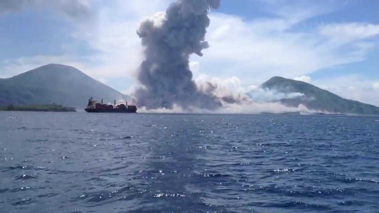 (VTC News) - Một tiếng nổ dữ dội vang lên rồi cột khói bụi khổng lồ xuất hiện và mảnh vụn văng lên không trung khi núi lửa tại khu vực tây nam Thái Bình Dương thức giấc.