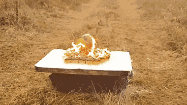 Một YouTuber ở Ukraine dùng 12.000 que diêm để nướng quả trứng đà điểu, ngọn lửa làm cháy vỏ trứng nhưng bên trong vẫn chưa chín.