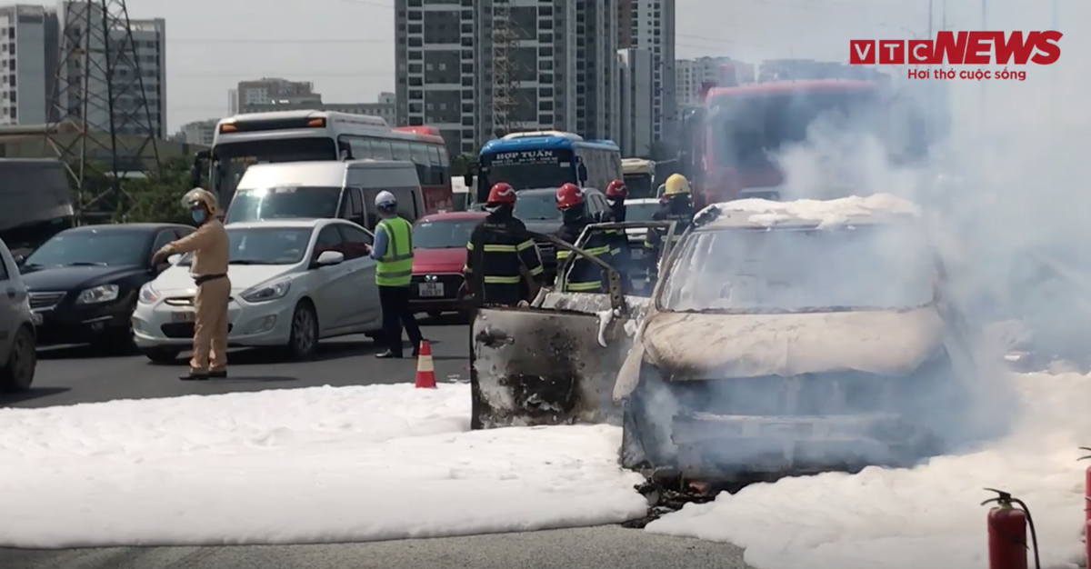 Video: Ô tô 7 chỗ bốc cháy ngùn ngụt, cao tốc Pháp Vân - Cầu Giẽ tắc dài 2km