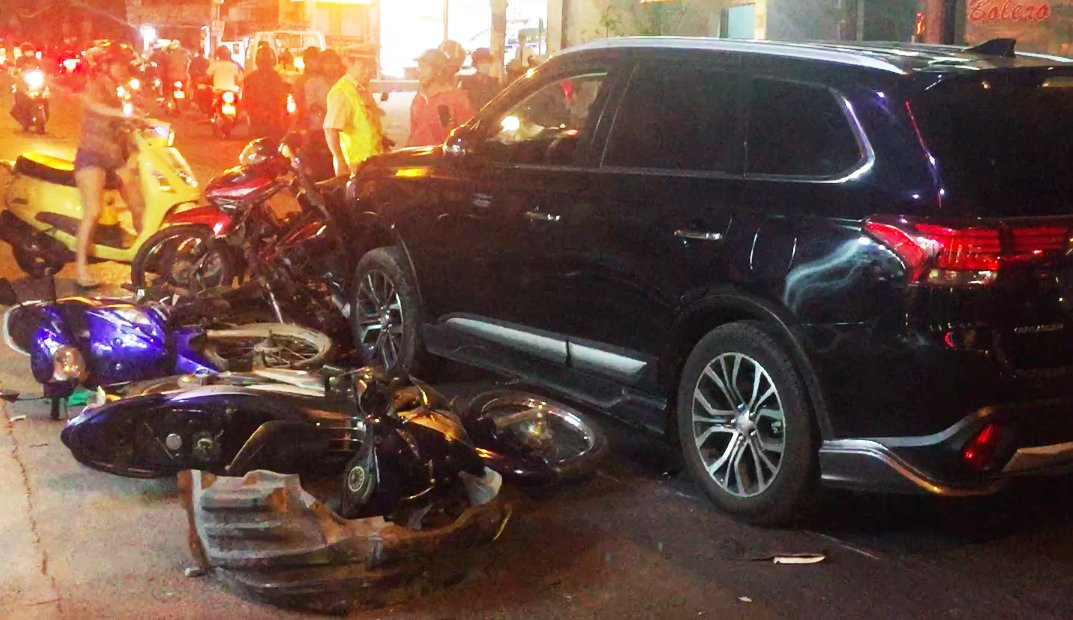 Tối 15/3, tại quận Tân Bình (TP.HCM), một xe ô tô 7 chỗ đang chạy trên đường bất ngờ húc thẳng vào 4 xe máy phía trước, khiến những người trên xe máy bị thương nặng phải nhập viện cấp cứu.
