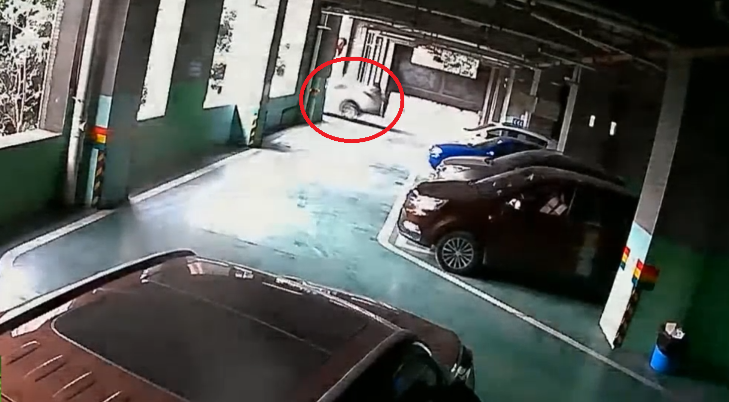 Video: Ô tô đâm thủng tường, rơi từ tầng 2 bãi xe xuống đất