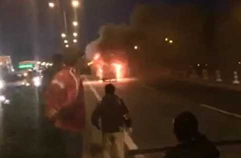 | Chiếc xe bốc cháy dữ dội trên cầu |