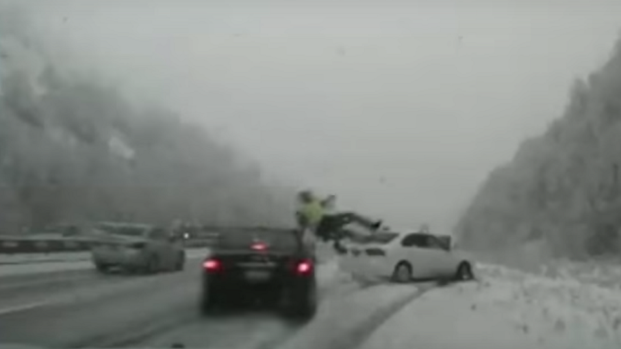 Sỹ quan Sergeant Cade Brenchl được điều động tới đây khi giao thông khu vực bị ảnh hưởng nghiêm trọng sau đợt tuyết rơi khiến đường trơn trượt.
