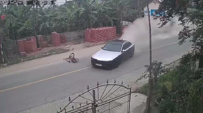 Video: Ô tô tông xe đạp bay vài chục mét, nam sinh thoát chết thần kỳ