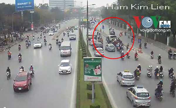 Khi đi tới trước cửa hầm Kim Liên (Hà Nội), chiếc ô tô từ từ dừng lại rồi bất thình lình cho xe leo qua dải phân cách giữa để lên đường Đại Cồ Việt.