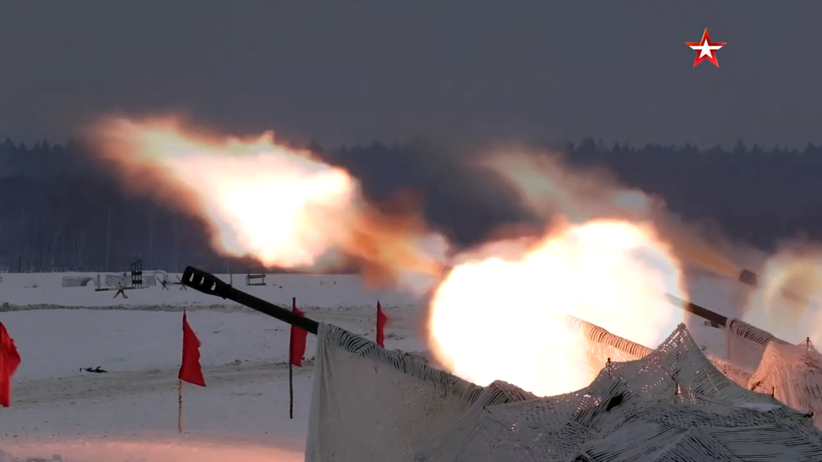 Pháo tự hành Msta-S hiện đại cỡ nòng 152 mm tiêu diệt các mục tiêu ở cách xa 20 km, được khai hỏa trong cuộc tập trận ở thao trường Alabino.