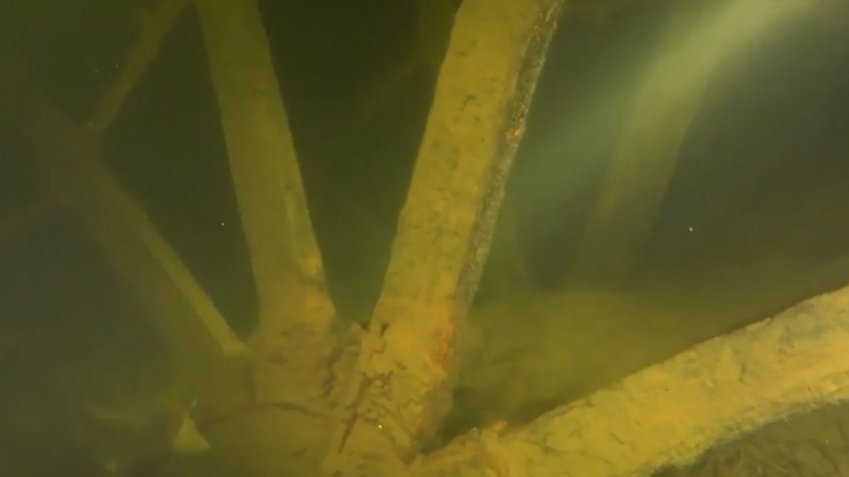 Thợ lặn phát hiện bánh guồng vẫn còn lưu vết than của tàu hơi nước cổ xưa chìm dưới đáy hồ Champlain.