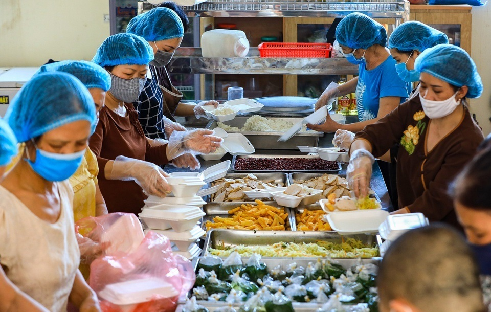 Phật tử chùa Phúc Long cùng nhau góp thực phẩm, nấu 150 đến 300 suất cơm gửi tặng bác sĩ, bệnh nhân trong Bệnh viện K, nơi đang bị cách ly do dịch COVID-19.