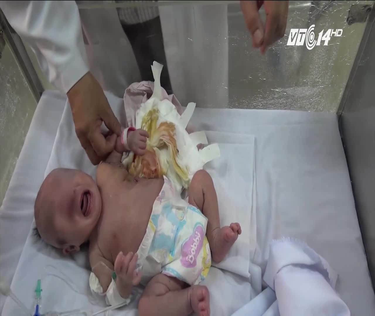 Một cháu bé vừa ra đời, đã mang theo 1 khối u lớn và ngày càng lớn hơn chỉ trong vòng 1 tháng, các bác sỹ bệnh viện Nhi đồng 1 TP.HCM đã buộc phải cắt bỏ khối bướu có kích thước gần bằng cơ thể này.