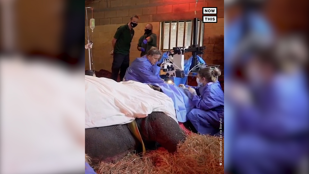 Vườn thú tại vương quốc Anh đã phẫu thuật đục thuỷ tinh thể thành công cho tê giác một sừng 19 tuổi.