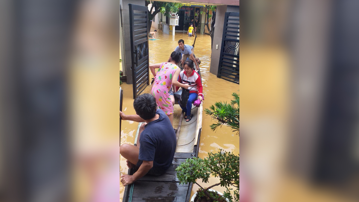 Video: Phố biến thành sông, người dân TP.Đông Hà dùng thuyền di chuyển