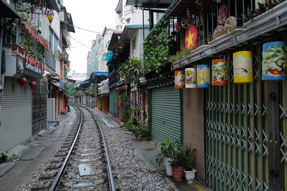 "Phố cà phê đường tàu" (Hoàn Kiếm, Hà Nội) vắng lặng, nhiều hàng quán đóng cửa, sau 2 tuần dừng hoạt động.