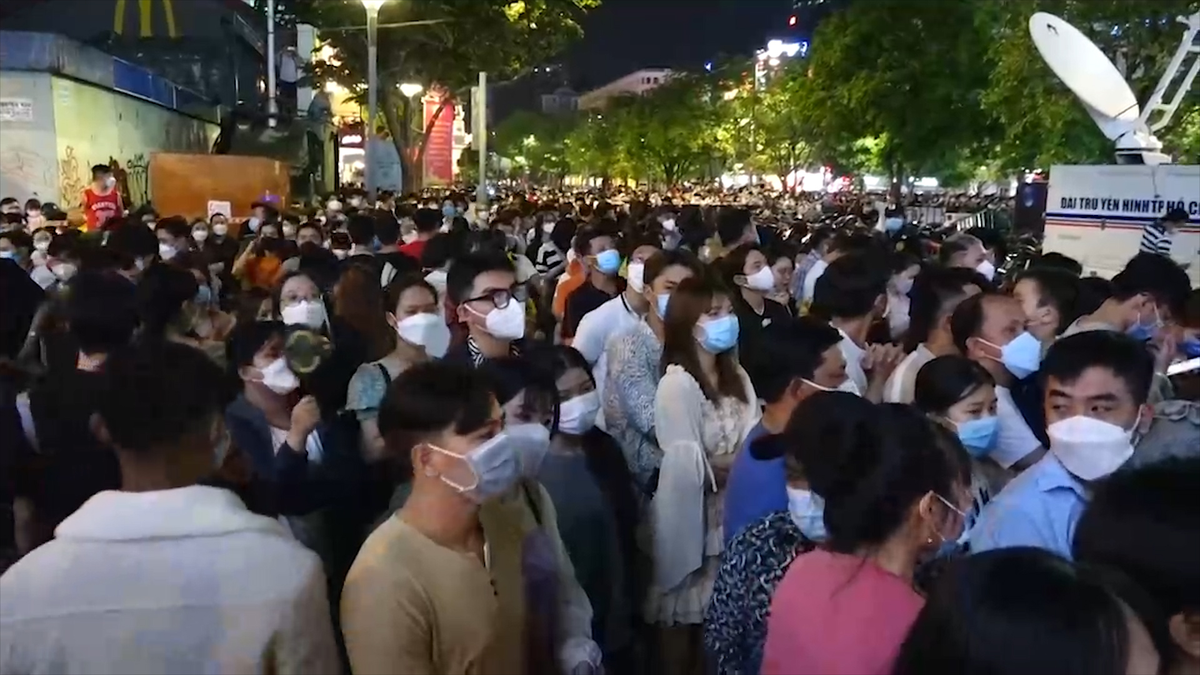 Tối 31/12, người dân TP.HCM đổ về phố đi bộ Nguyễn Huệ để vui chơi và chờ đón chương trình countdown chào đón Năm mới 2022.