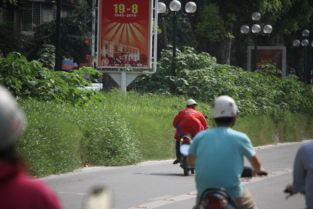 Dải phân cách cứng giữa phố Giảng Võ (quận Ba Đình, Hà Nội) thời gian gần đây giống như rừng vì cây dại mọc um tùm không có người cắt tỉa.