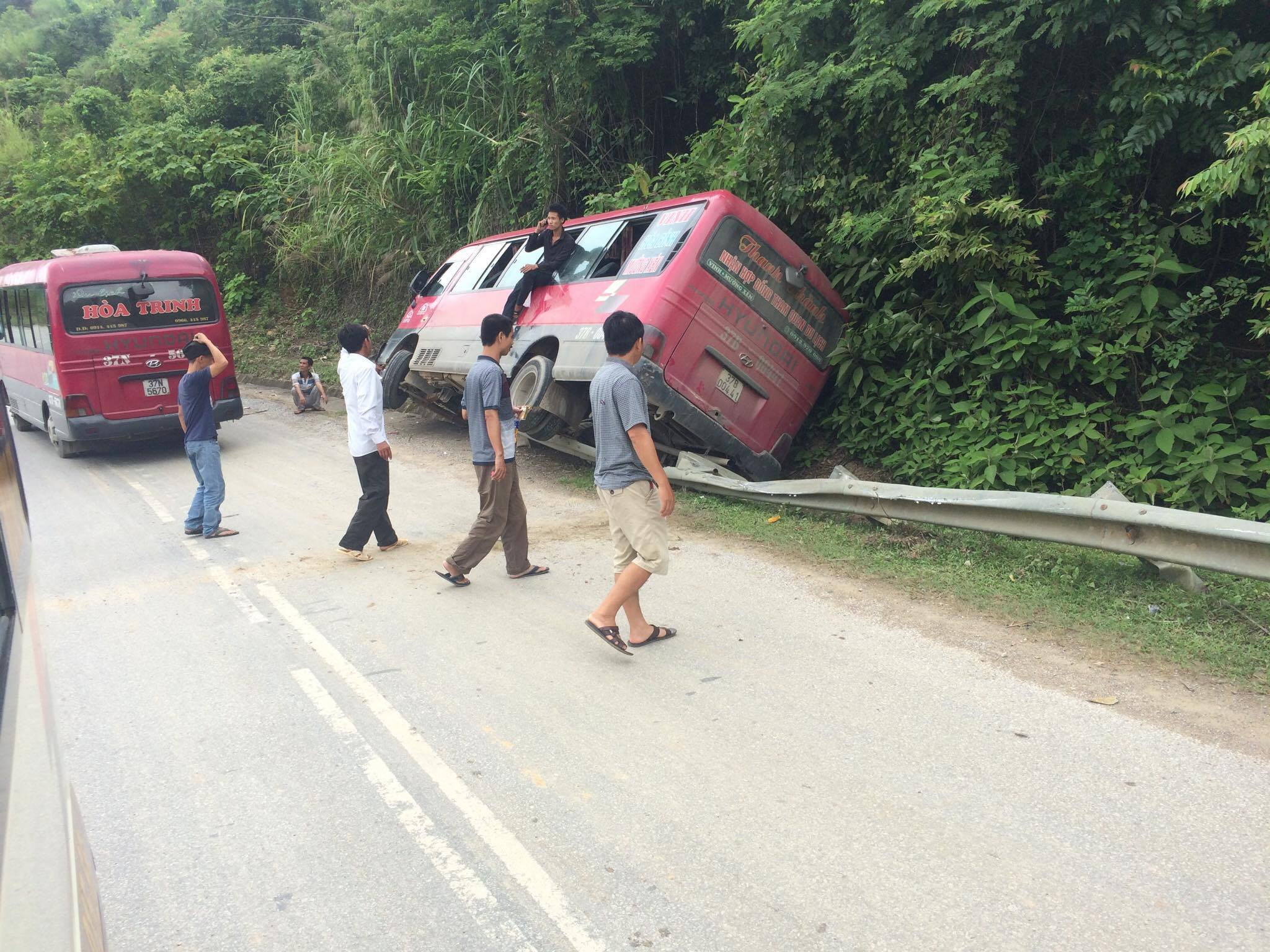 Theo đó, vào thời điểm trên, xe khách Thanh Thành mang BKS: 37B - 004.41 do nam tài xế (chưa rõ danh tính) điều khiển chạy lưu thông hướng thị trấn Mường Xén - TP.Vinh (Nghệ An). Di chuyển đến đoạn đường thuỷ điện Khe Thơi thì bất ngờ mất lái, chiếc xe trượt dài gần 20m, đâm vào lan can bên đường.