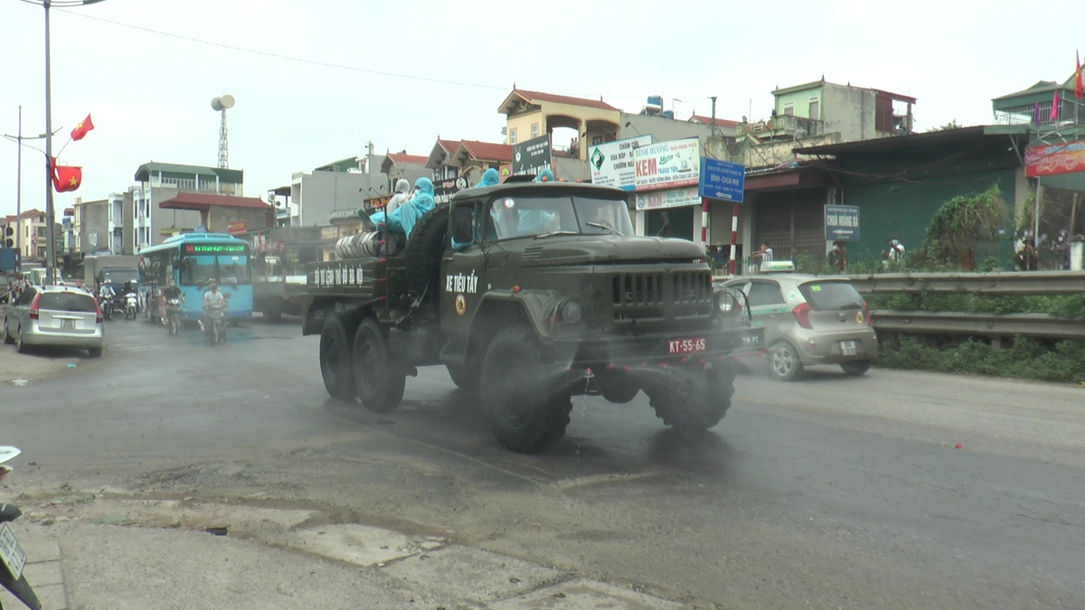 Video: Phun khử trùng phố Tía ở Thường Tín, nơi có 10 ca mắc COVID-19