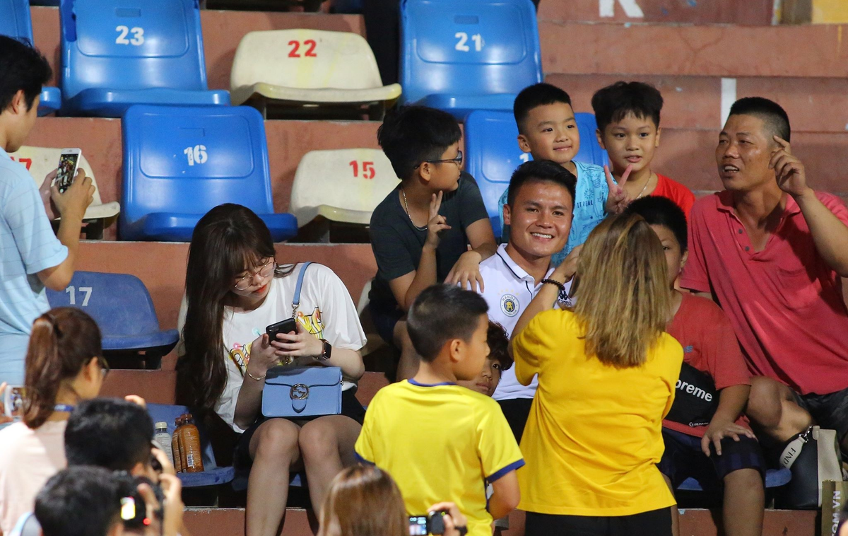 Nhiều fan hâm mộ vây quanh Quang Hải.