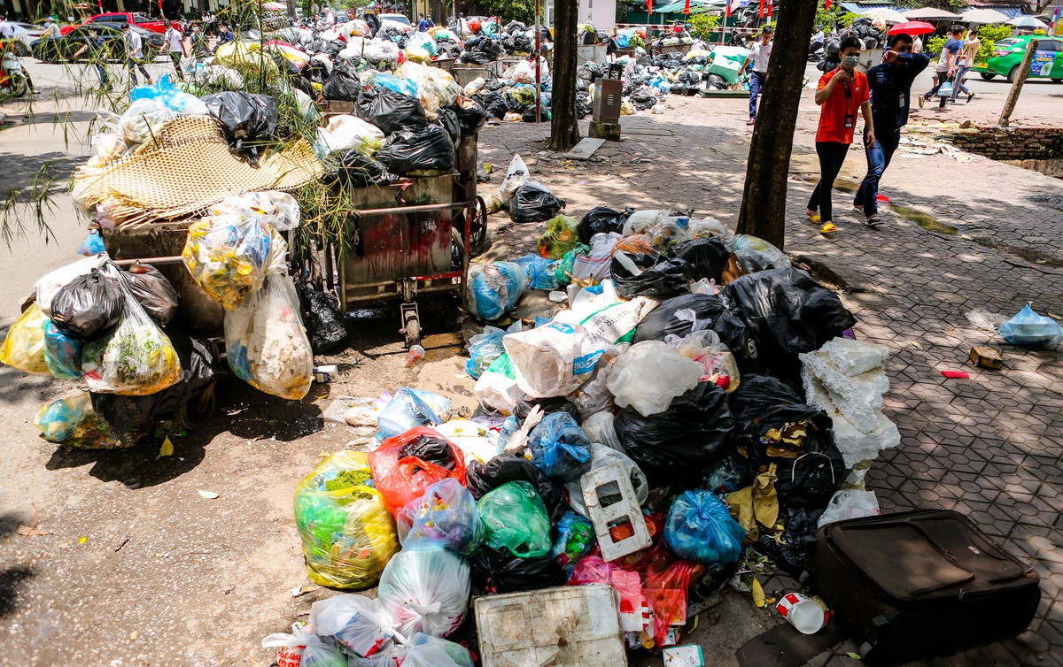 Một số tuyến đường trên địa bàn thành phố Hà Nội vẫn còn ùn ứ rác thải sinh hoạt, nhiều nơi rác được tập kết trên vỉa hè và lòng đường.