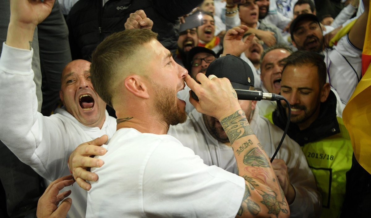 Kết thúc trận bán kết lượt về với Bayern Munich, các cầu thủ Real Madrid mặc ngay chiếc áo in số 13 với thông điệp hướng tới chức vô địch UEFA Champions League lần thứ 13 trong lịch sử CLB. Sergio Ramos cao hứng hơn, giành lấy micro tiến lại khán đài cùng các cổ động viên hát mừng đội chủ sân Bernabeu vào chung kết lần thứ ba liên tiếp.