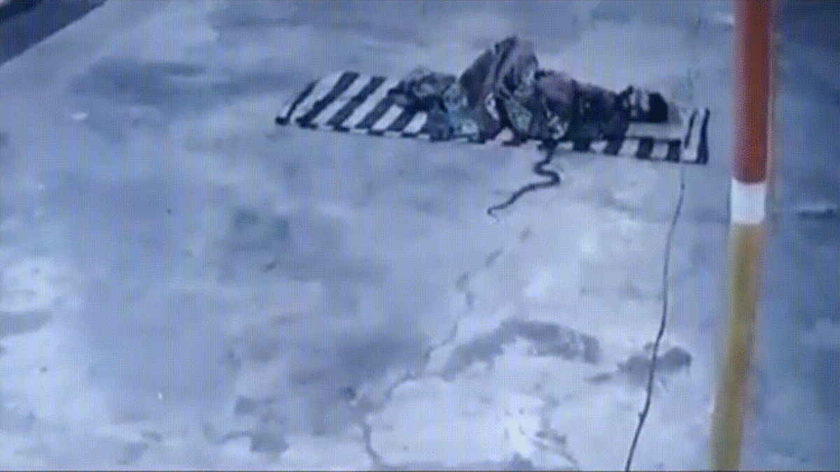 Người đàn ông đang ngủ say thì bị con rắn bò lại gần và nằm ở đó suốt 4 phút ở phố Banswara, Ấn Độ.