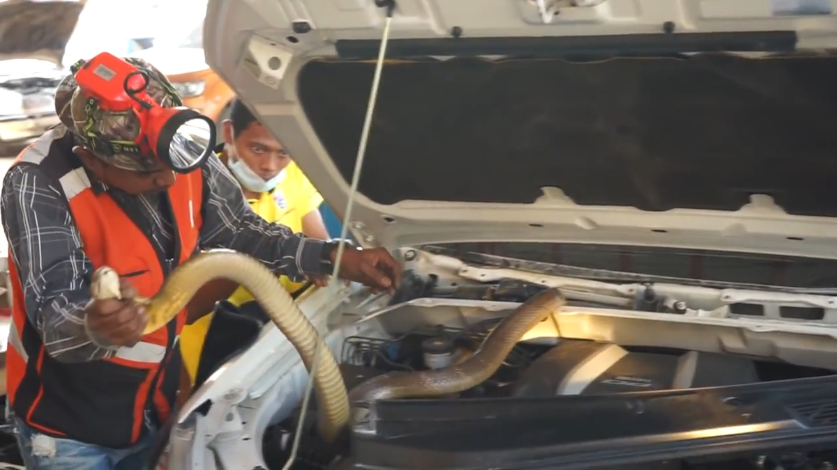 Video: Rắn hổ mang dài 3m trú ẩn trong động cơ xe ô tô ở Thái Lan
