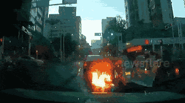 Một chiếc ô tô đang chạy trên đường tại TP Mã Minh (Quảng Đông, Trung Quốc) bị rò rỉ xăng và bốc cháy, ngọn lửa kéo dài hơn 10 mét.