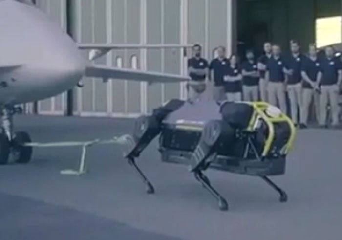 Video: Robot chó khoe sức mạnh kéo máy bay hơn 3 tấn trên đường băng