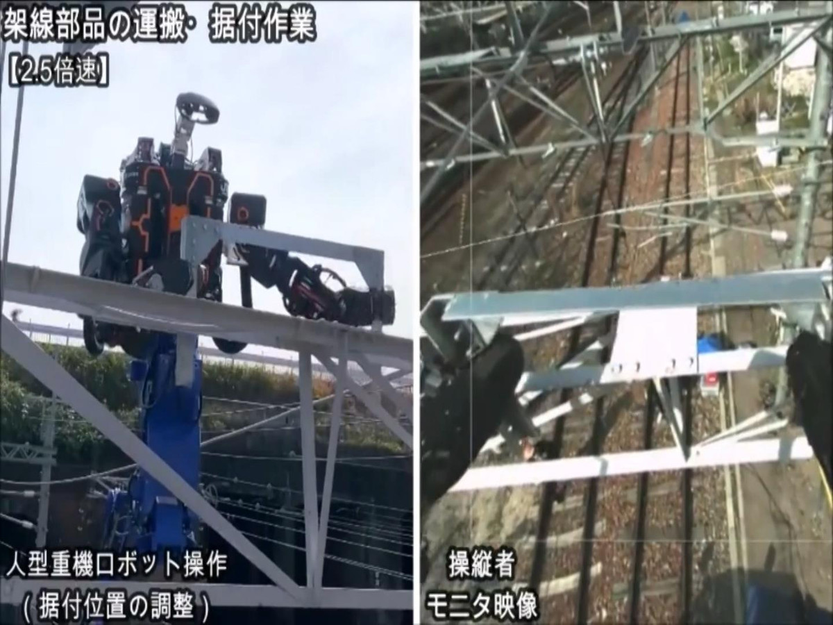 Robot khổng lồ điều khiển bằng công nghệ thực tế ảo và di chuyển nhờ xe cần trục, giúp công nhân bảo trì đường sắt an toàn, hiệu quả.