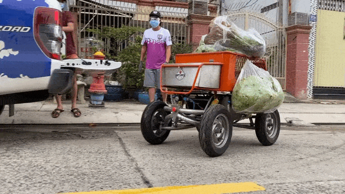 Anh Nguyễn Vĩnh Duy (TP.HCM) đầu tư gần 80 triệu đồng để chế tạo chiếc xe điểu khiển từ xa, chuyên vận chuyển thực phẩm đến khu cách ly, phong tỏa.